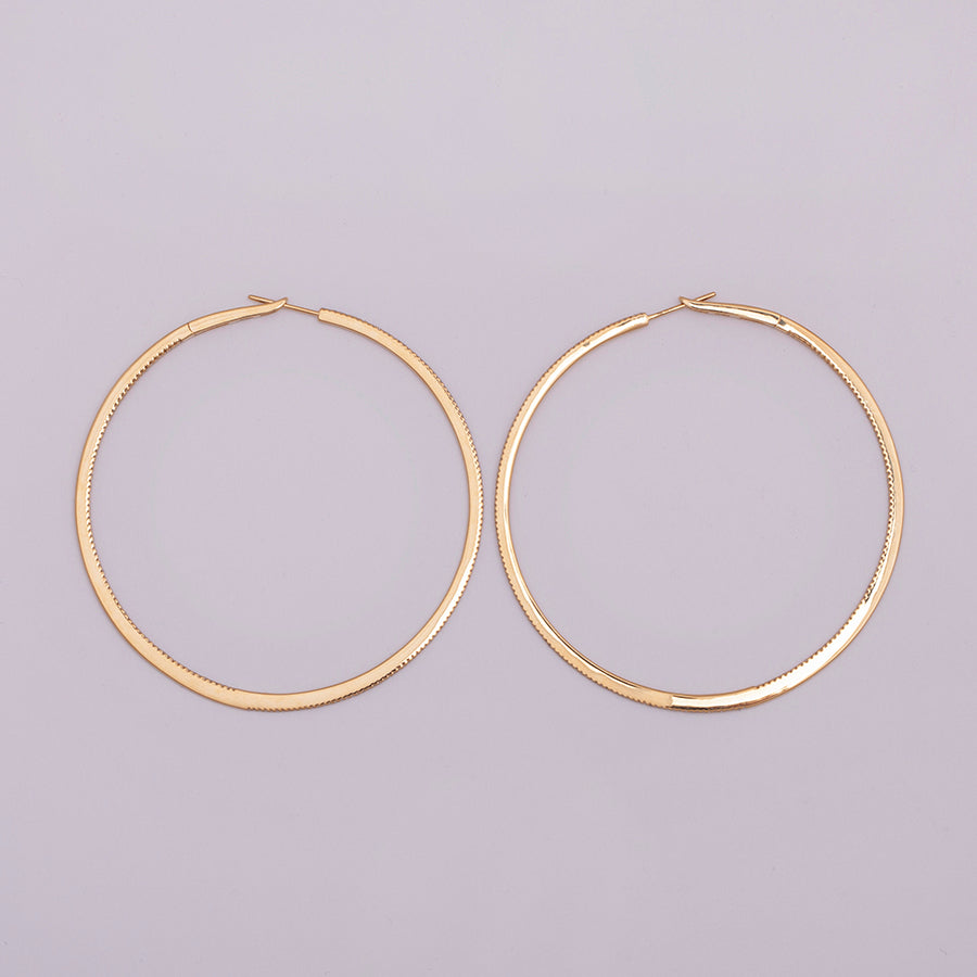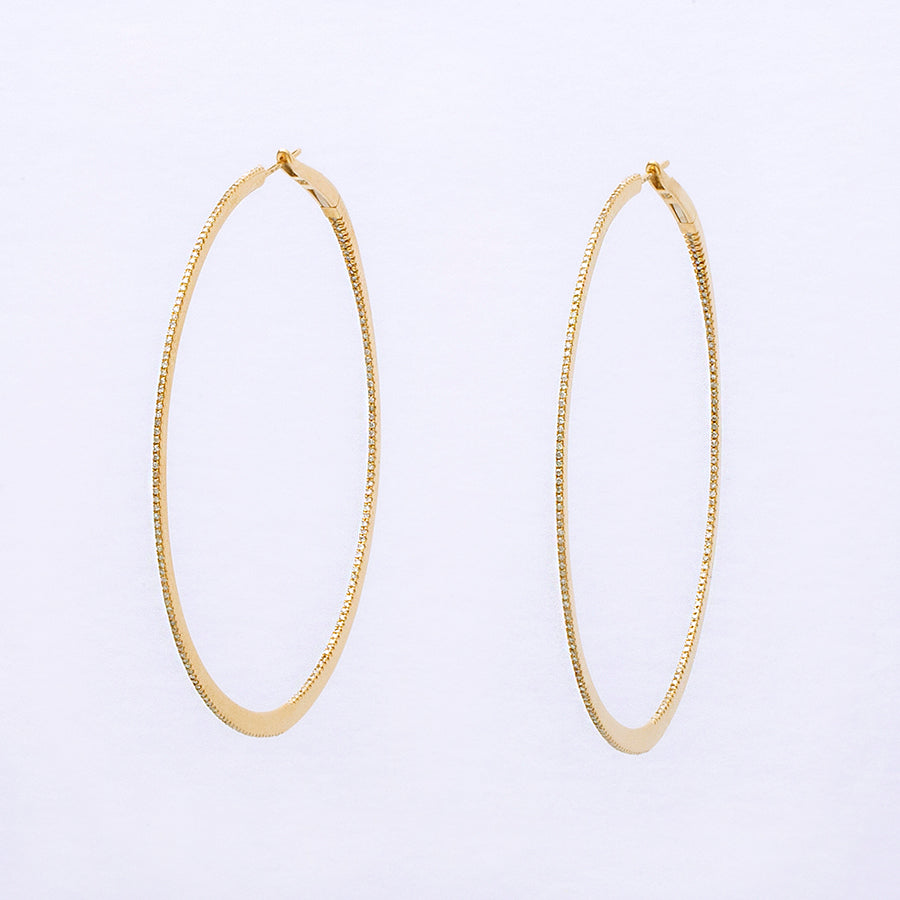 Crafted with 18KT yellow gold, these hoops feature 0.77CT of round cut diamonds half inside and half outside, with a remarkable clarity rating of VVS. A stunning piece of jewelry perfect for any occasion.